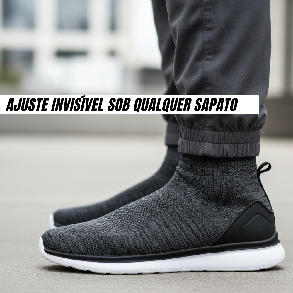 Adapta-se perfeitamente à forma do pé e do tornozelo, sem dobras nem pressão excessiva. Pode ser usada com sapatilhas desportivas, botas ou calçado do dia a dia sem se notar.